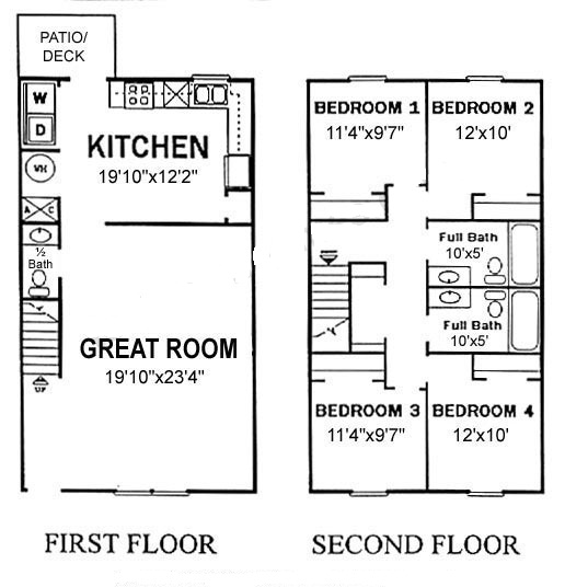 - 4 bedrooms and 2 full bathrooms upstairs.